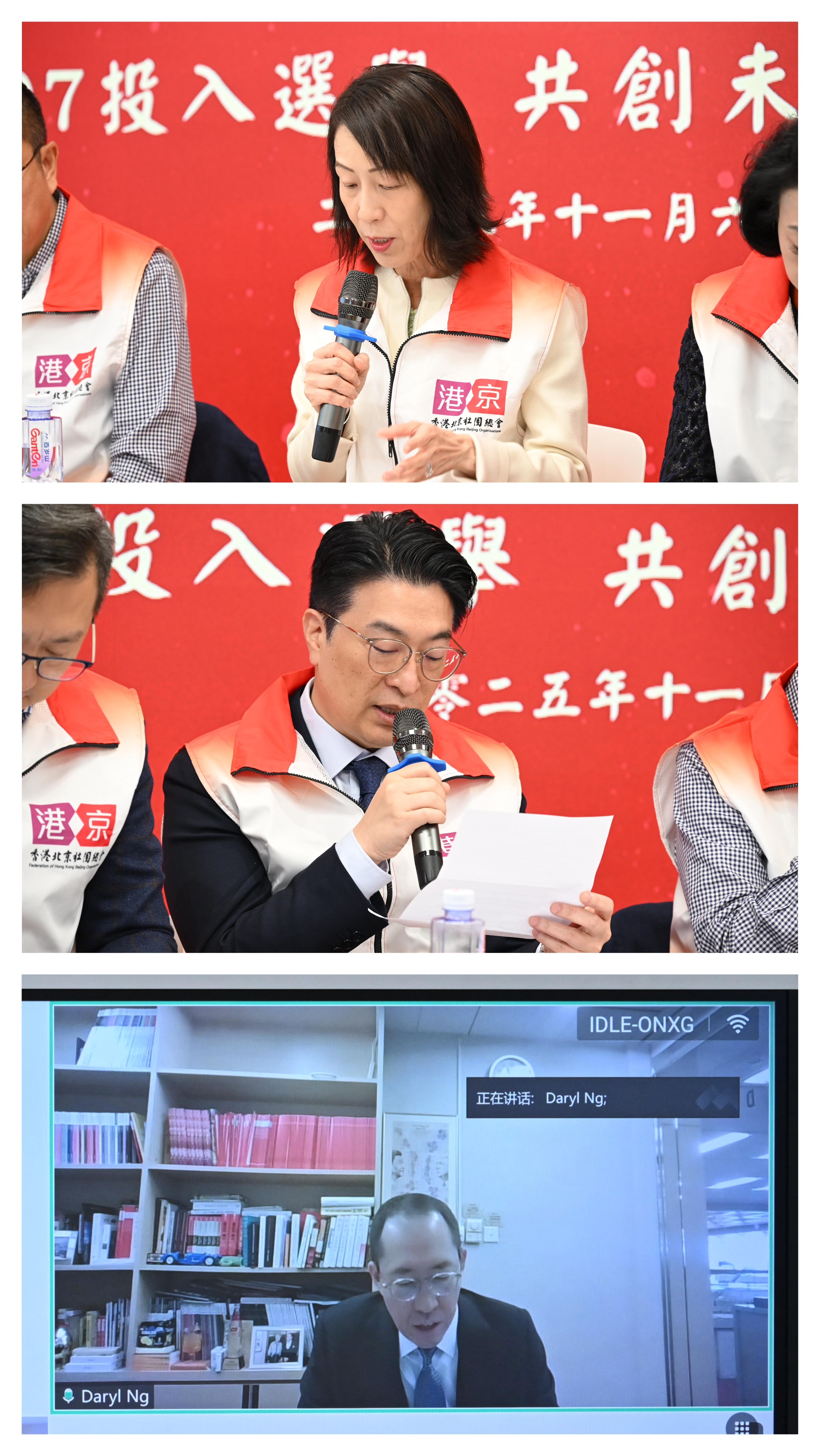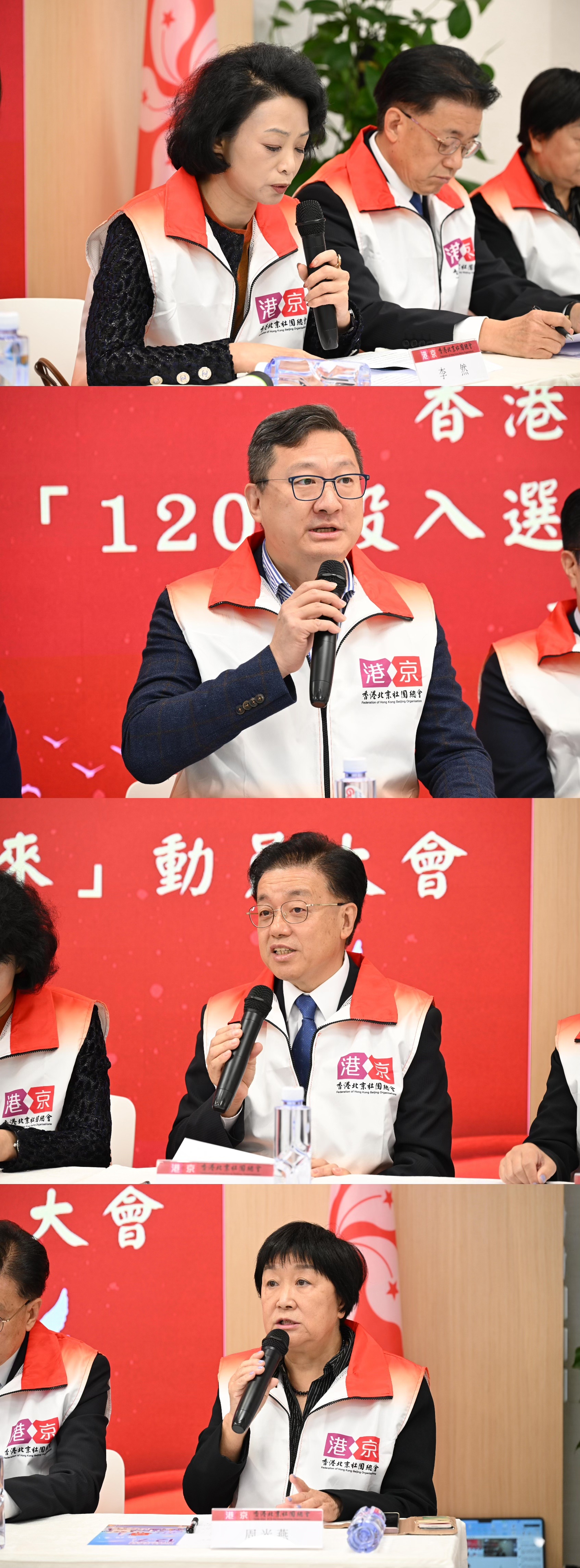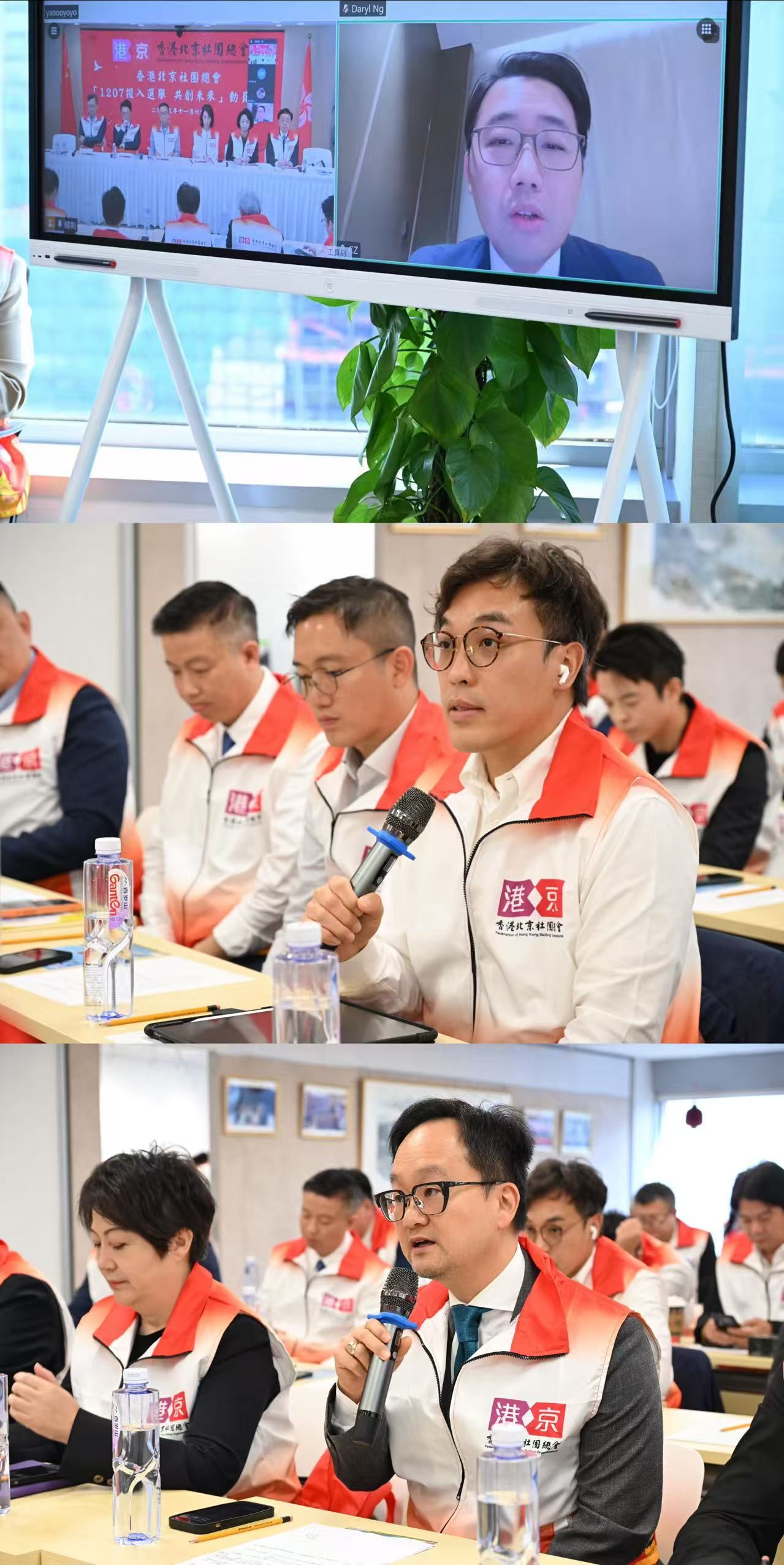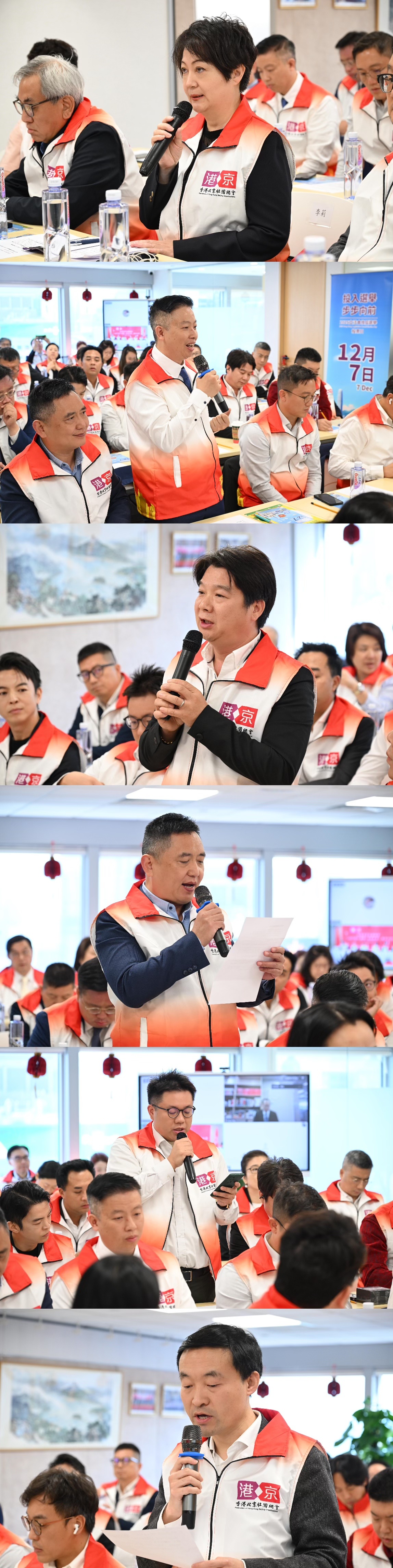 本會團體會員會首長:香港北京高校校友聯盟會長李然、公屋居民關愛會理監事會會長李冠誼,北角居民協會主席李莉、香港北京海外聯誼會秘書長周光燕,康樂區居民協會會長馬軼超,北角居民協會青年會主席王坤曉、元朗民生服務處主席周永勤、香港專業人士(北京)協會代表王柏榮、香港文體旅交流協會會長朱龍斌,分別發言目前「1207投入選舉 共創未來」選舉工作進展情況。